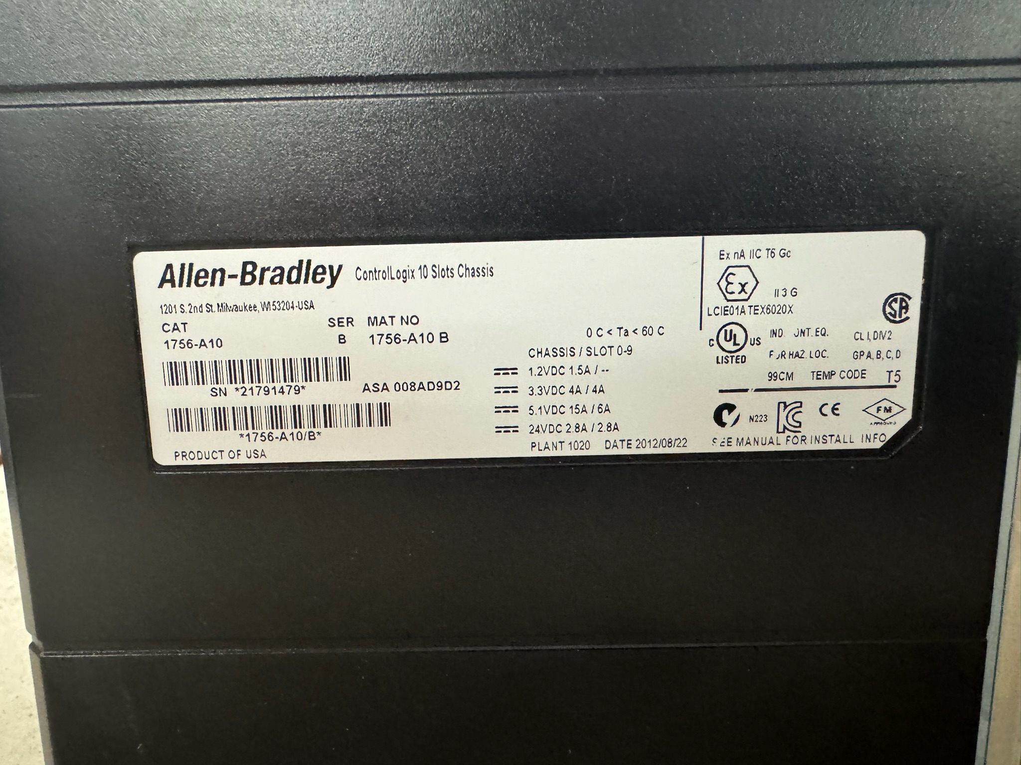 | Product Type | ControlLogix 10-Slot Chassis |