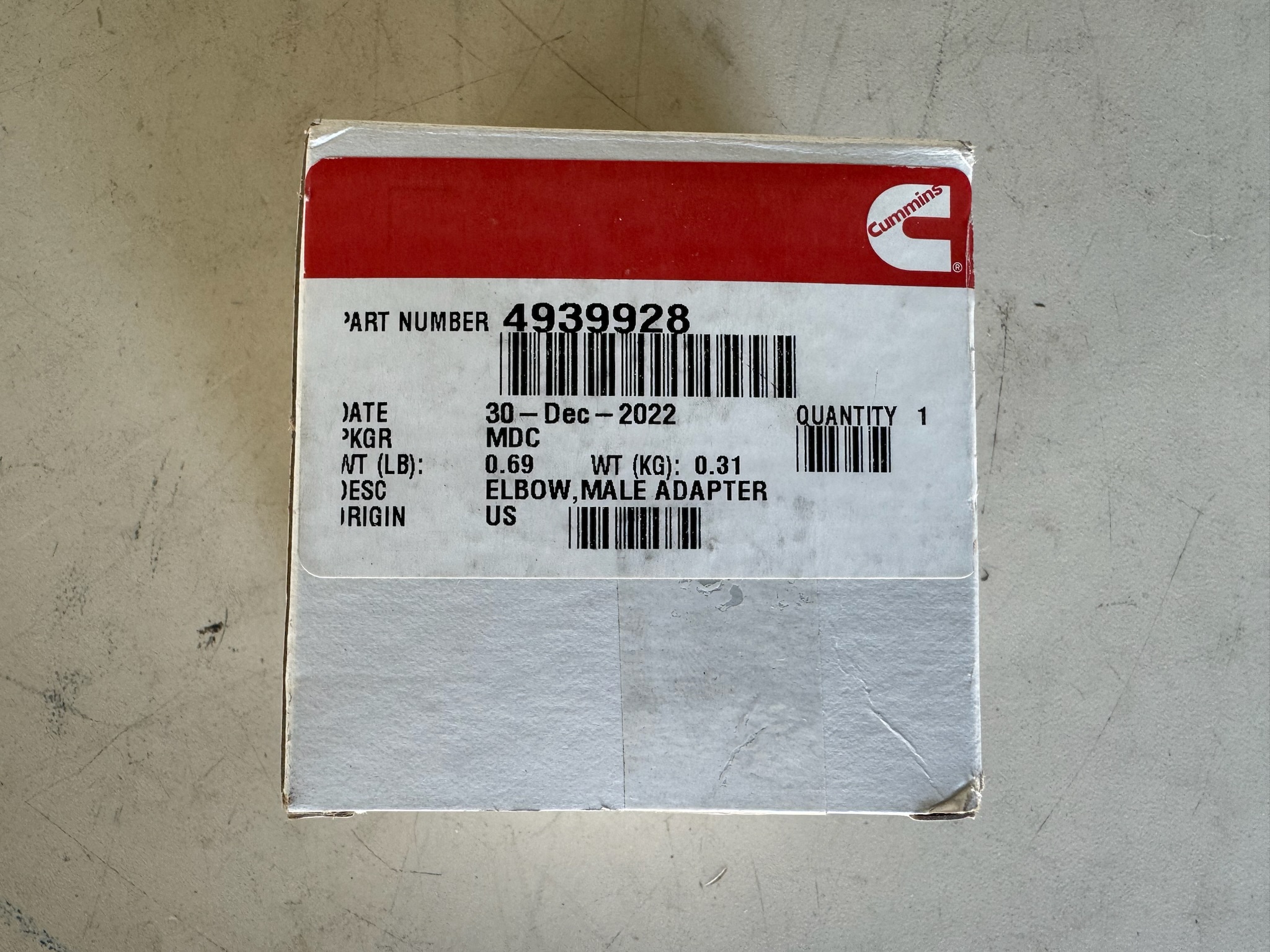 Cummins Male Adapter Elbow 4939928
