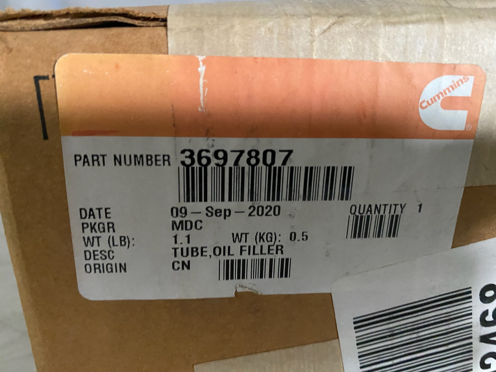 Cummins Oil Filler Tube 3697807