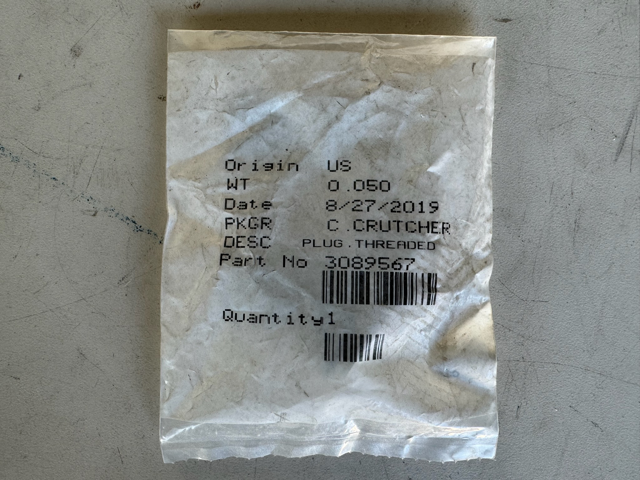 Cummins Threaded Plug 3089567