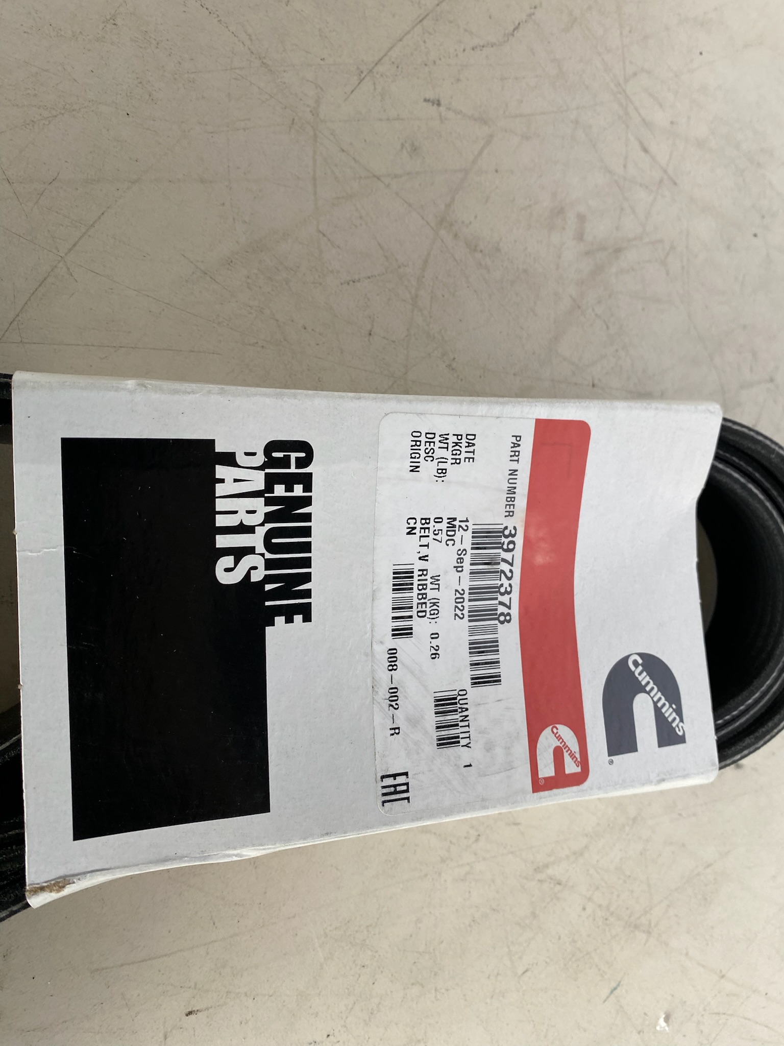 The Cummins 3972378 V-ribbed belt is a genuine OEM serpentine belt engineered for Euro 5 2.8 L ISF / QSF diesel engines, offering reliable serpentine drive power transfer in demanding industrial and truck applications.