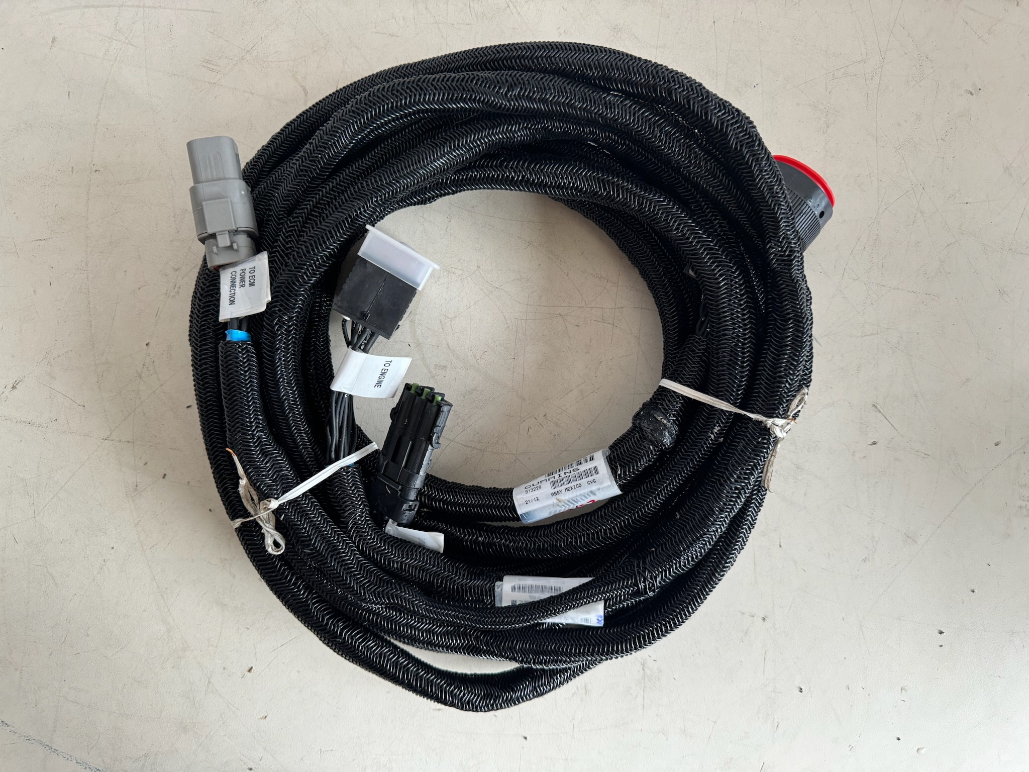 The Cummins wiring harness, part # 5397780, is a genuine OEM engine-to-control-module electrical harness designed for use in Cummins industrial and heavy-duty engine systems. It ensures factory-spec wiring connectivity and durability in harsh operating environments.